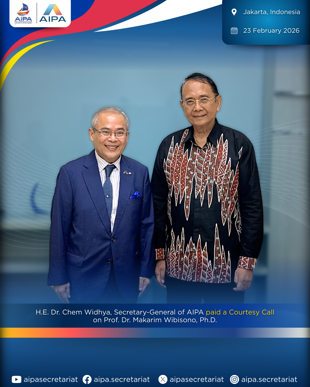 Prof. Charoen Kantawongs, AIPA Distinguished Service Award recipient (2019), passed away peacefully in Bangkok this morning after a long battle with cancer. He was surrounded by loved ones and family. The AIPA and AIPA Secretariat are deeply saddened by the passing of an outstanding member. His valuable service, excellent contribution, and tireless efforts towards the […]