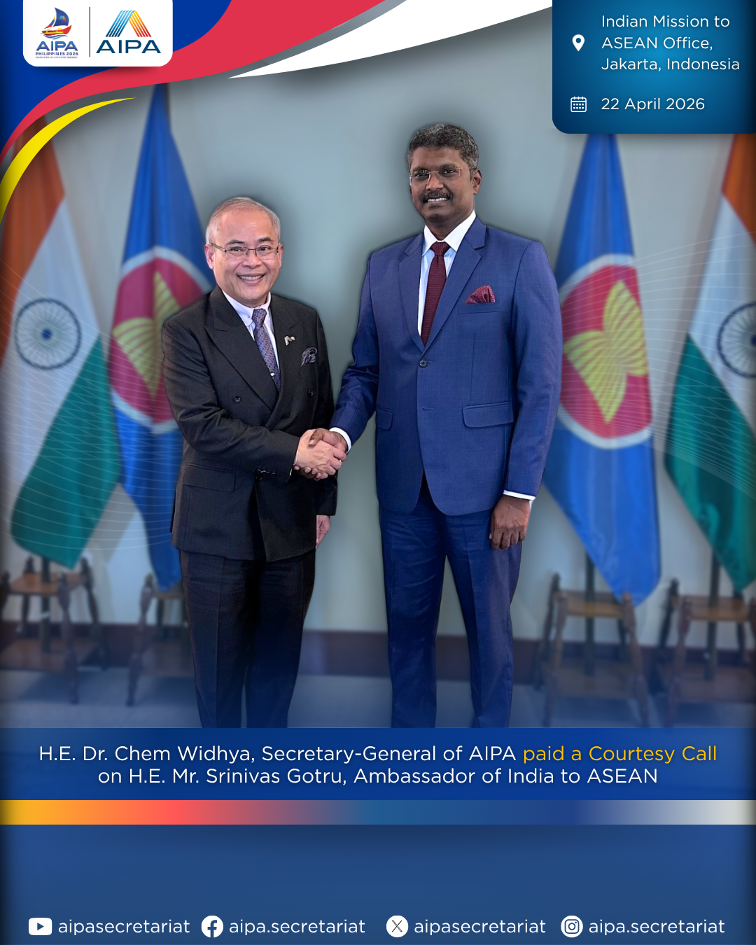 On behalf of the ASEAN Inter-Parliamentary Assembly, we would like to sincerely congratulate ASEAN on the 54th Anniversary. AIPA will continue to support ASEAN in realizing our common goals and priorities of the #ASEAN Community. Happy Birthday to ASEAN!