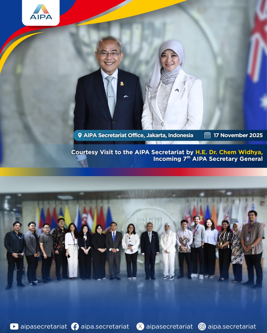 the Secretary General of AIPA had a courtesy meeting with H.E. Nararya S. Soeprapto, the newly appointed Deputy Secretary General of ASEAN for Community and Corporate Affairs (CCA)